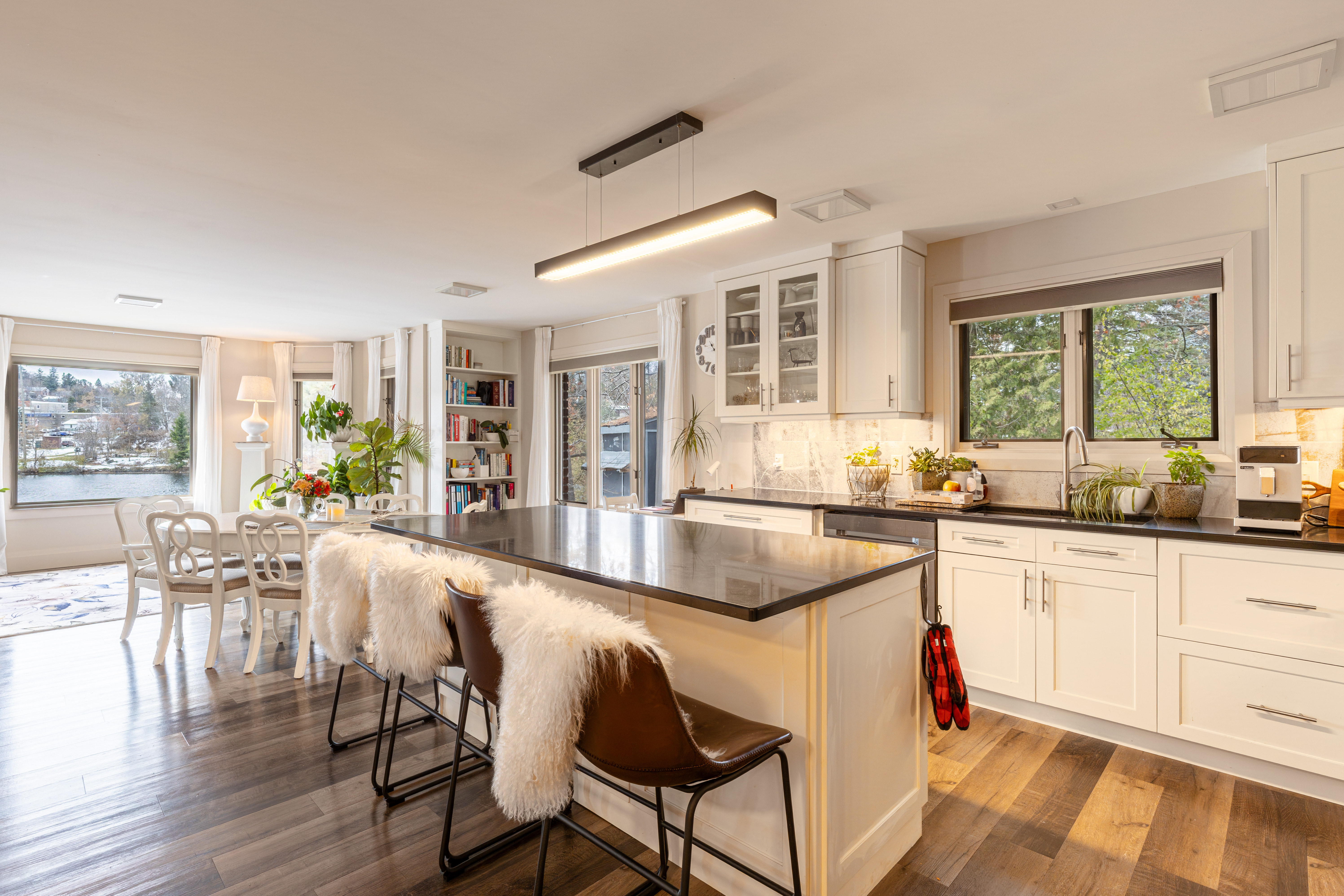 Designed for low-maintenance living without compromise, the property includes an attached garage, interlock driveway, and a private yard complete with a gazebo and patio, an ideal spot to unwind by the water. Inside, the tastefully updated interior offers an open-concept layout with bright principal spaces and seamless flow.